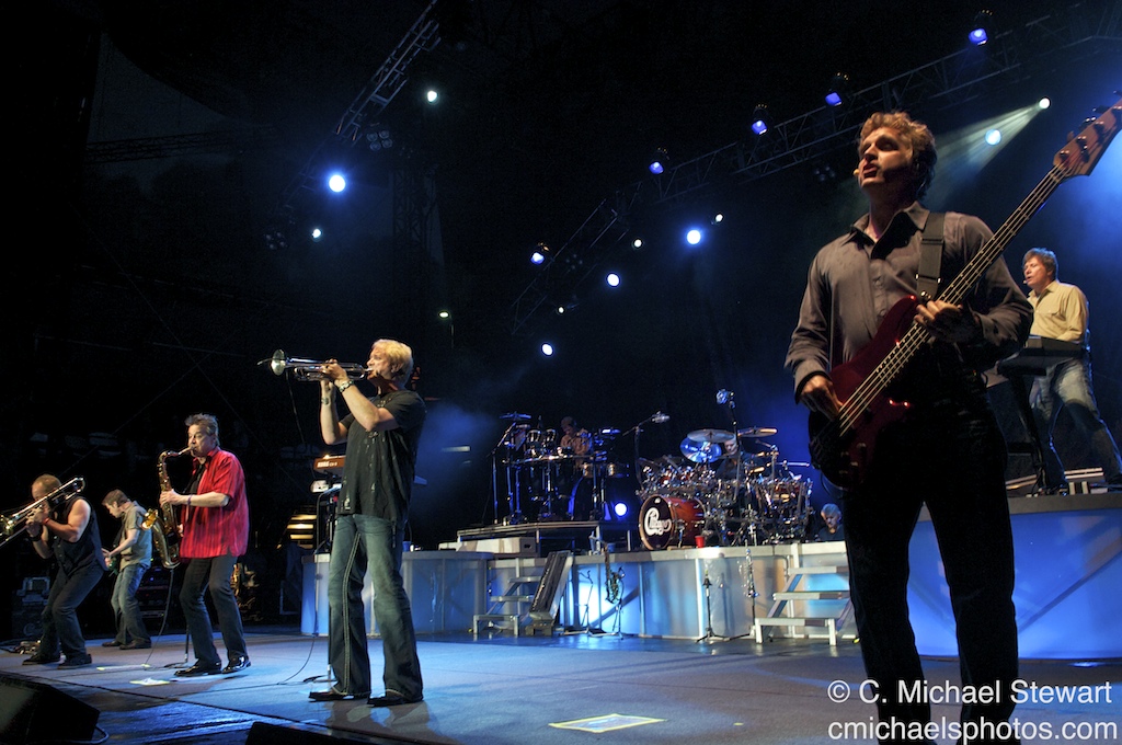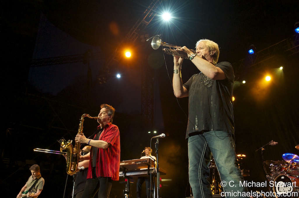 Fans braved a soggy night filled with severe thunderstorms and a hour and a half delay to see the current version of the band containing four original members, keyboard and vocalists Robert Lamm, the horn section of Lee Loughnane , Walt Parazaider, and Jame Pankow. The original members showed their love of entertaining by dancing and energizing the crowd.