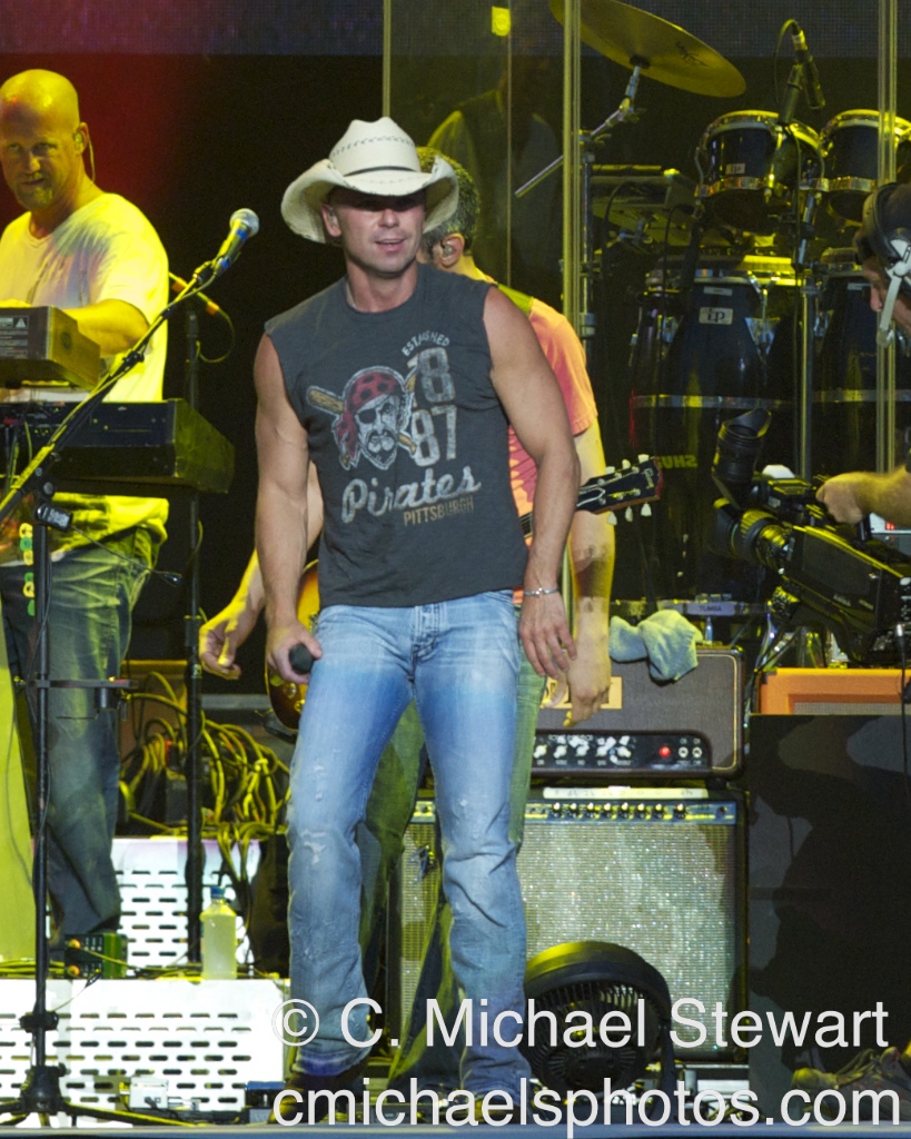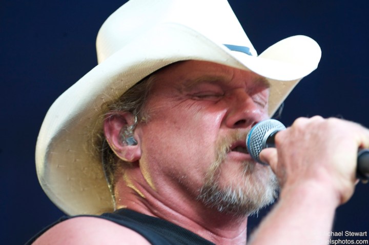 Trace Adkins began his show with a comedy video of himself , then turned the heat with three consecutive fan favorites songs. He joked about the July heat and then commented “my favorite color on a woman is sweat”.