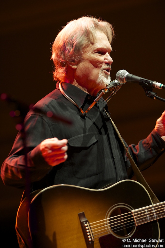 Kris Kristofferson has always identified himself first and foremost as a writer, and true writers know that what works best is giving a piece of themselves to the listener. With his latest album, This Old Road, Kristofferson lays a chunk of his own soul on every track. Kristofferson began the show playing two songs before bringing out Haggard along with his band and the two traded licks and songs the remainder of the show. Kristofferson apologized for his cold. which at time greatly hampered his voice. But did sing many of his hits including , Sunday Morning Coming Down”, Why Me Lord”, and “Lovin Her was Easier”.