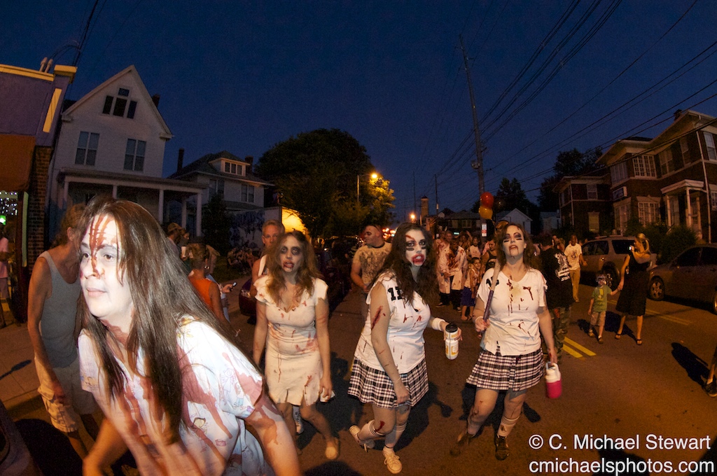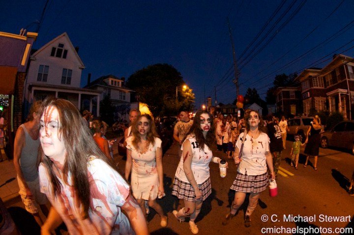 On 8/29 at 8:29 Danger Run held its 2011 Zombie Attack Walk. It was a photographers dream. The Louisville Zombie Attack Walk has become a HUGE tradition in the Louisville area. The Zombie Attack Walk is a annual event that occurs every year. Why 8:29 on 8/29? This is the tradition that was started by it’s creators John King, Mike Welch, and Lyndi Lou marking their birthday. Little did they realize at the time that it would turn into such a popular event. That tradition reanimates itself each year in form of thousands of zombies walking down the middle of Bardstown Rd. Zombies stop the traffic in the streets and Louisville is in chaos. Much like the Dan O’Bannon’s Return of the Living Dead set in Louisville.