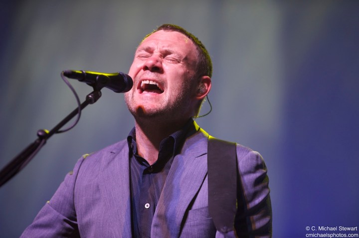 David Gray visited the Iroquois Amphitheater, Louisville, KY, on a 103% Friday evening. The record breaking heat didn’t seem to slow down Gray or his audience as he ran through his arsenal of popular songs while wearing his trademark suit. Performing to his second consecutive sold out audience Gray may have set another record by filling the amphitheater.