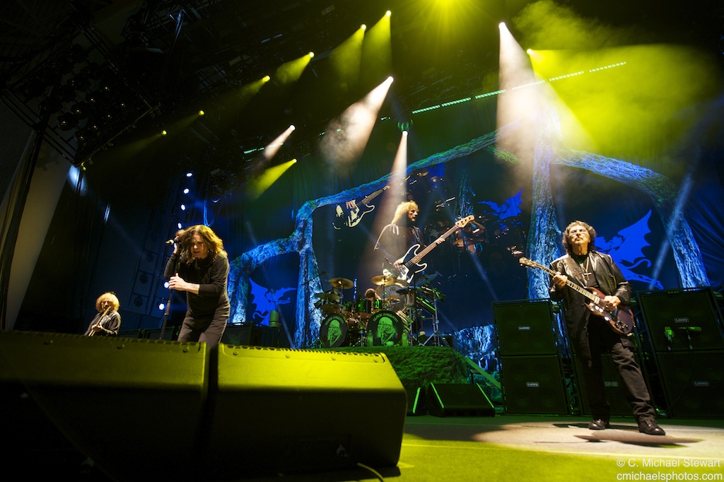 The Black Sabbath tour in support of their new CD “13” visited the Klipsch Music Center outside Indianapolis Sunday. Ozzy Osbourne voice was surprisingly clear and strong early in the show as he shuffled through the 18 song set. Original members, Tony Iommi and Geezer Bultler are true musicians who created a wall of sound along with Tommy Clufetos on Drums who replaced original , Bill Ward.