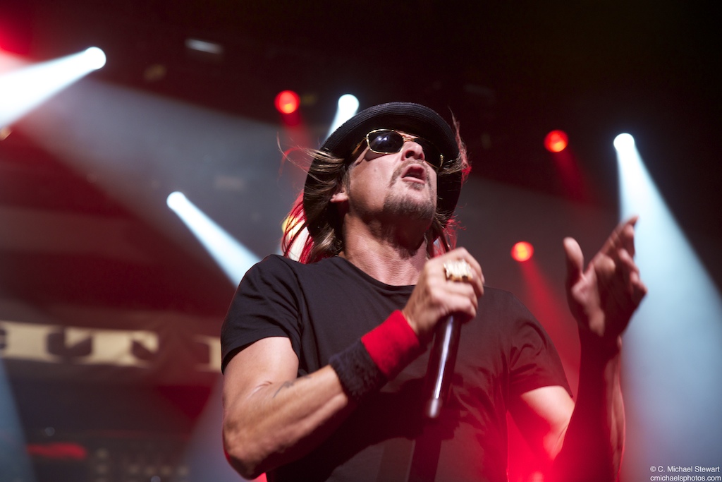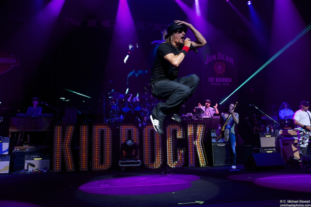 Kid Rock took over Riverbend Music Center as his “$20 Best Night Ever” tour in support of his latest release “Rebel Soul” played to a sold out audience. Rock insisted that all tickets were sold for twenty dollars and even had a Kid Rock food special of four hot dogs and two drinks for $20. The show began with a prayer by Rock from behind the stage curtain. Rock prayed “in thanks for his fans and promised to bring his best to the performance”.’