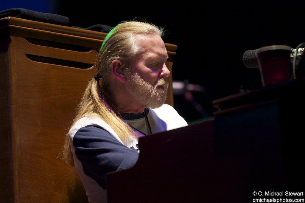 Inviting guest musicians to sit in is expected with the Allmans, this night they were joined by Taj Mahal on “Leavin’ Trunk” and “Statesboro Blues”.